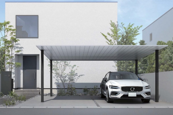 YKKAPのアルミ屋根カーポート「PLAIN ROOF プレーンルーフ 2台用」は、“シンプル”を追求したノイズレスなディテールで余計な装飾を削ぎ落とし、洗練された印象を与えます。奥行勾配により実現した屋根の水平ラインが、建物の屋根のラインと揃うことで、外観全体に一体感が生まれます。全11種類のカラーバリエーションから、住宅に合わせた最適なカラーを選ぶことができます。