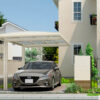 LIXIL「フーゴF」は、強風にも揺るがない安心の強度と、スタイリッシュでフラットな屋根や、使いやすさを追求したスタンダードなカーポートです。縦に連棟することで車を2台駐車することができます。