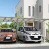 LIXIL「ネスカF」は、フラット屋根の美しさと守りの安心を備えたスタイリッシュなカーポート。コストパフォーマンスに優れ、豊富なサイズバリエーションが魅力的です。縦に連棟することで車を2台駐車することができます。