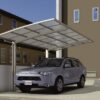 三協アルミ「セルフィ」は、住宅の水平ラインと合わせやすいフラットデザインでシャープな印象を与えます。使い勝手に配慮され、幅広い敷地に対応できるサイズ展開とカラーバリエーションが魅力です。屋根材の「マットブラック(ブラックポリカ)」で、柱や梁の本体と屋根をブラック色で統一することが可能に。