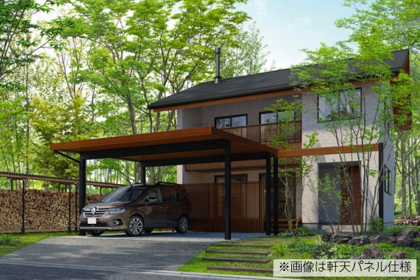 YKKAP「ジーポートPro 1500」は、耐積雪強度50cm相当・基準風速Vo=46m/sに対応。高強度な折板カーポートにありがちな無骨さとは無縁のデザインと機能性を実現。細部までシンプル&フラットにこだわった高い意匠性と、木調の軒天仕上げなど、幅広いオプションを選択できるのが魅力です。横並びに車を2台駐車することができます。