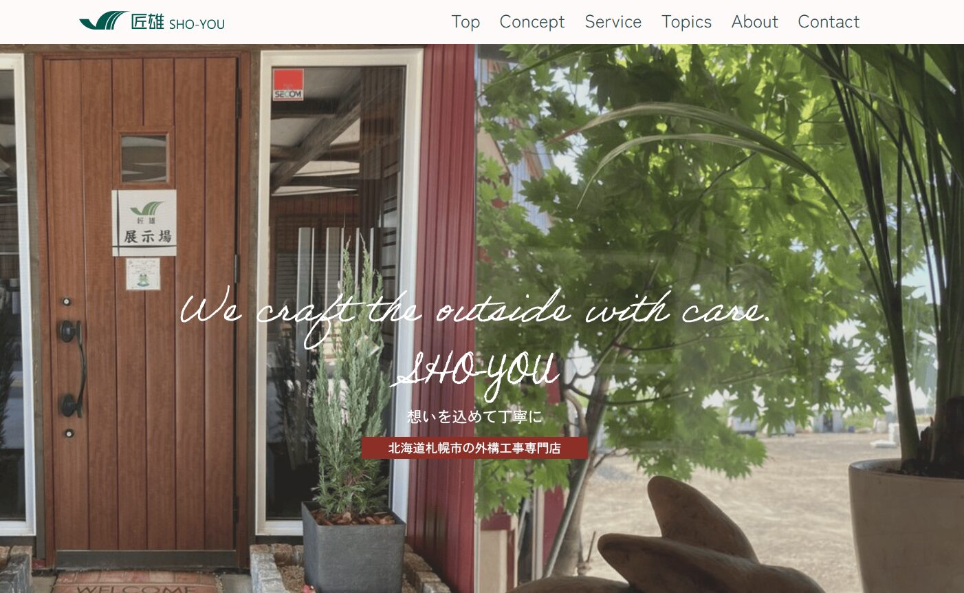 昭和62年(1987年)創業の老舗外構会社で、石狩市に本社と展示場を構えています。社名の由来でもある「光・風・影・水・緑・音」の六つの要素を取り入れた空間設計がコンセプトです。そのため、雰囲気や情緒を大切にした外構を作りたい方に向いています。